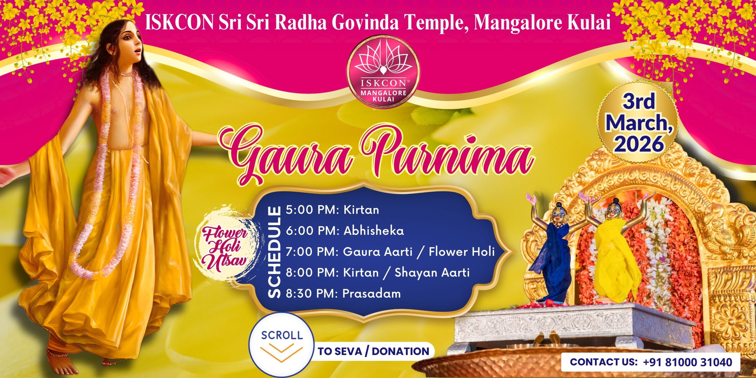 This festival celebrates the appearance of Chaitanya Mahaprabhu. It is observed annually (in February – March) by Krishna devotees all over the world—especially in the area of Mayapur, India, the place where Mahaprabhu appeared in the year 1486.
